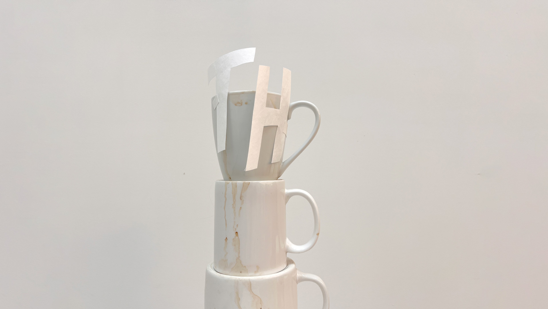 How do we, with others, come to an understanding in a shared environment? My father would often use objects on the breakfast table to explain approaches to questions like this in the philosophy of mind. Descriptions of everyday things often serve as examples to tease out problems in very dense philosophical texts. I remember describing the coffee cup as if I was being quizzed, my every word analyzed. In the video Cling, three mugs are presented, stained with the coffee my father would drink habitually in great volume. Language is represented by letters clinging to the coffee mugs, though the clarity of that (or any) reference is diminished as the letters waver and mount up in a heap. This unstable communication references not only the complexity of knowledge but also the effects of dementia. The letters are unreadable as they swarm the mugs, but they spell out a warning he gave me recently: “The daughter of the sentence will bring the death of Socrates.” Here, the “sentence” is a placeholder for “me.” Raising “death” probably acts as an anxious alarm, but also triggered memory of The Death of Socrates, a painting by Jacques-Louis David, one that we regularly stop by to view together at The Metropolitan Museum of Art.