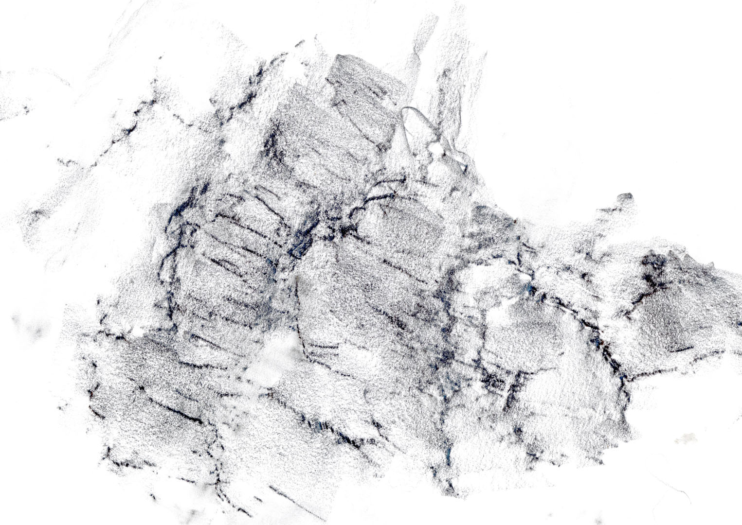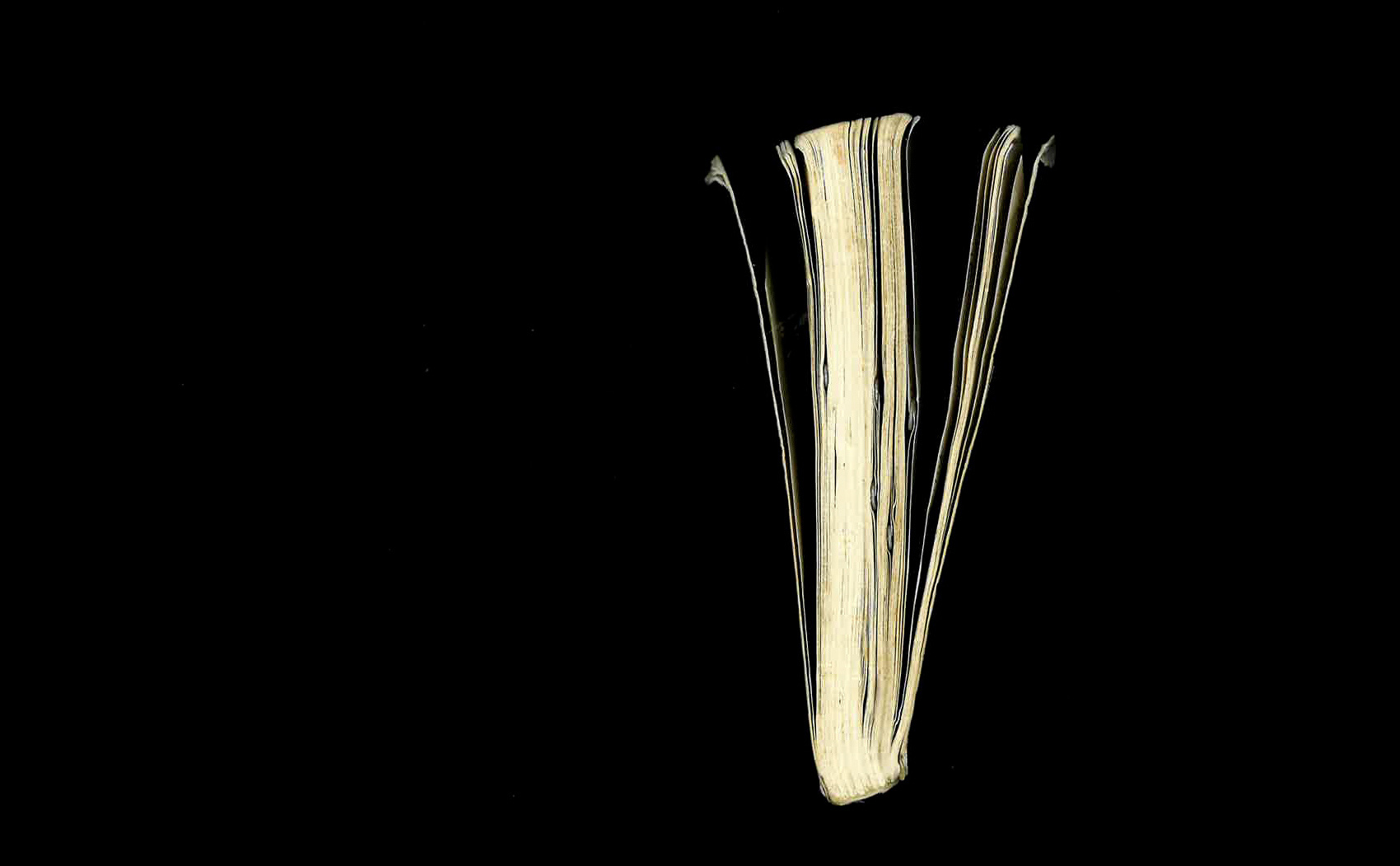 Minders connects on both medical and philosophical levels with my father's dementia, neurodegeneration, and the complexities of mind. As I read through my ailing father's library of analytic philosophy texts, I see paper clipped sections, folded pages, random objects, and nearly inscrutable margin notes, all marking information as important, useful, or something to return to. The paper clips have been in place for so long that their forms are engraved into the paper, indexes of mind, reminding, and guarding. In the video, I collage photographic stills from this growing archive of paper clips and post its, now separated from their responsibilities. Images of the top edges of my father's outstretched books are interspersed. Their oblique forms appear like flowers, papyrus, or hair. The barely visible paperclips still in place appear like dashed silver lines, revealing something “minded” in the text which is not visible to us now. The clips are a chorus moving in formation, creating a rhythm against the surrounding darkness that evokes a new language.